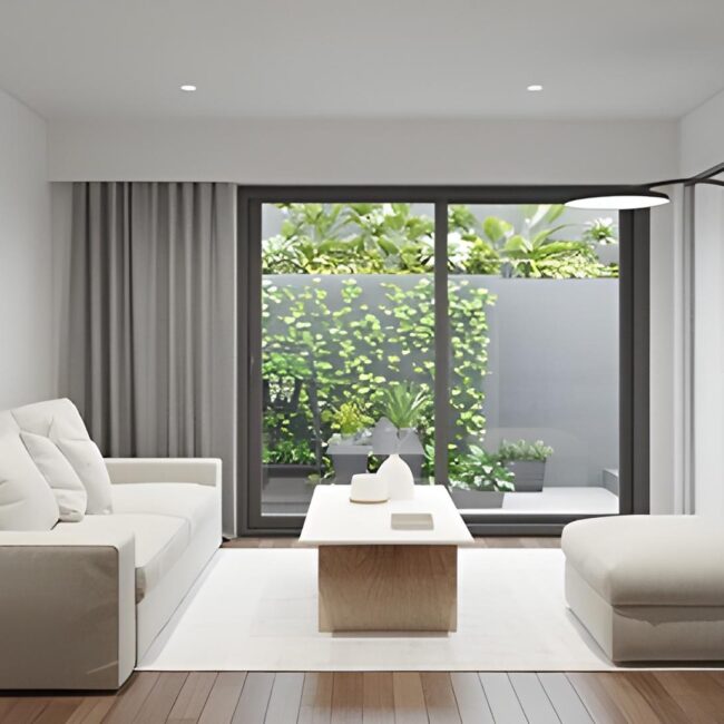 Façades monochromatiques : Chaque bâtiment adopte une stratégie de couleur monochromatique, renforçant une identité distincte au sein de la répétition. Cette palette sobre permet à la richesse texturale de la maçonnerie de devenir le principal vecteur d’expression.