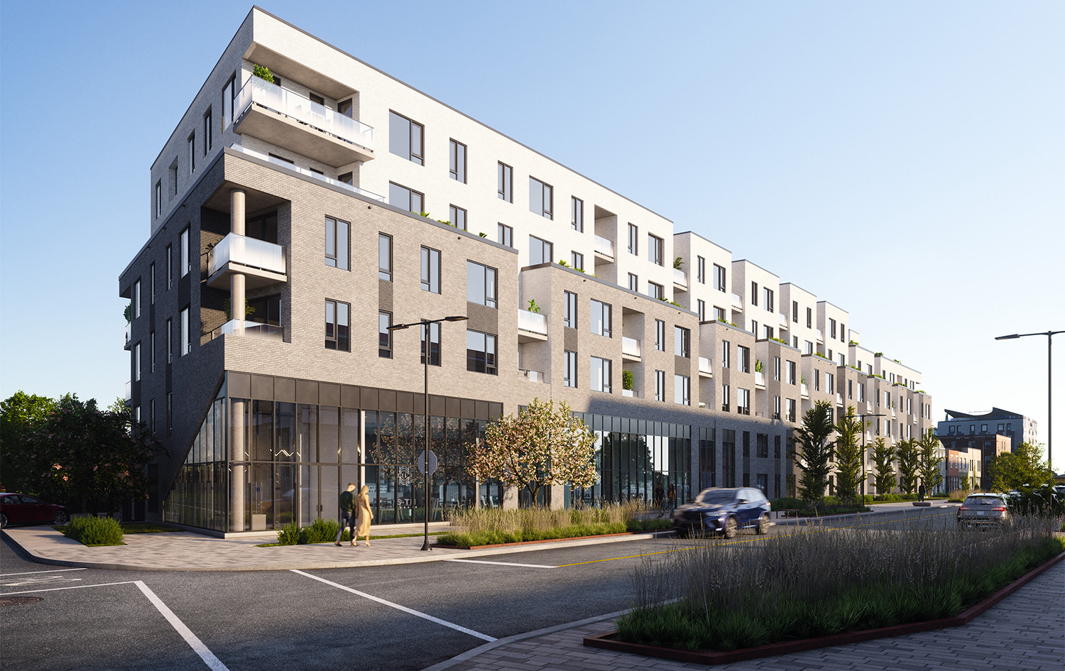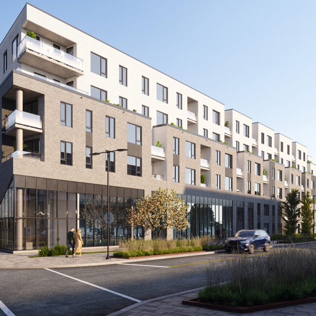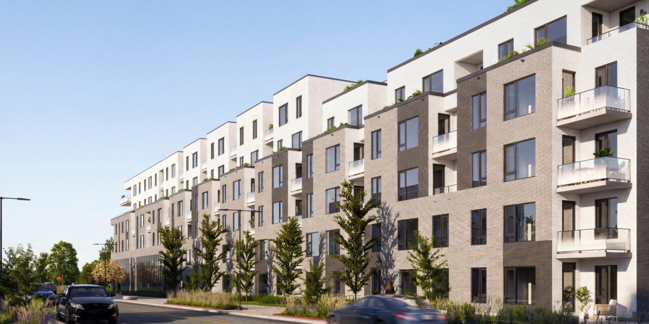 O-Rive est un développement résidentiel contemporain situé dans le quartier en pleine revitalisation de Montréal-Est. Ce bâtiment de six étages propose 117 unités locatives modernes, conçues pour enrichir la vie urbaine grâce à une architecture réfléchie et une intégration communautaire harmonieuse. Le projet inclut également des espaces commerciaux au rez-de-chaussée, favorisant un environnement mixte qui répond aux besoins quotidiens des résidents.